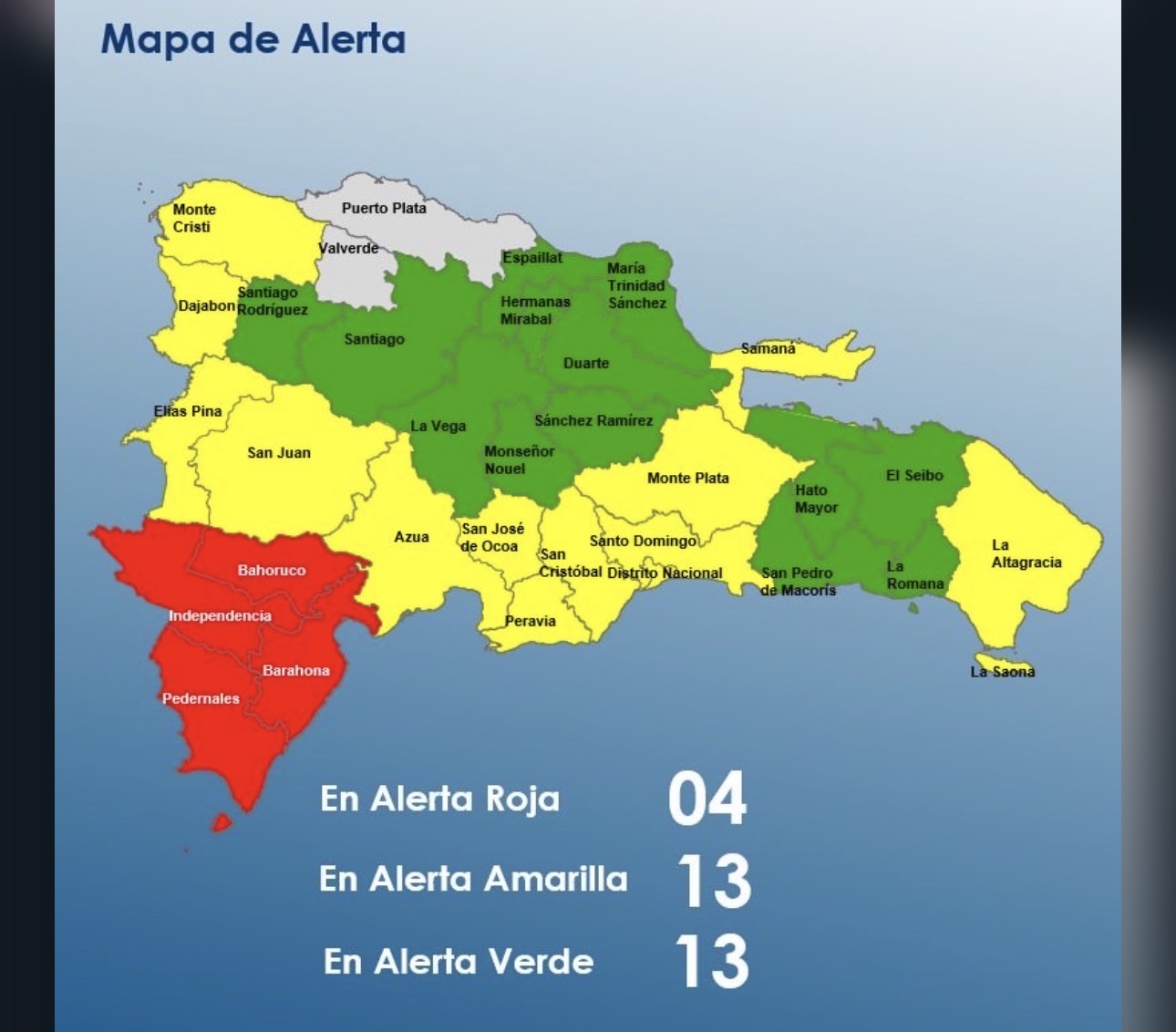 Solo Puerto Plata y Valverde se encuentran fuera de alerta.