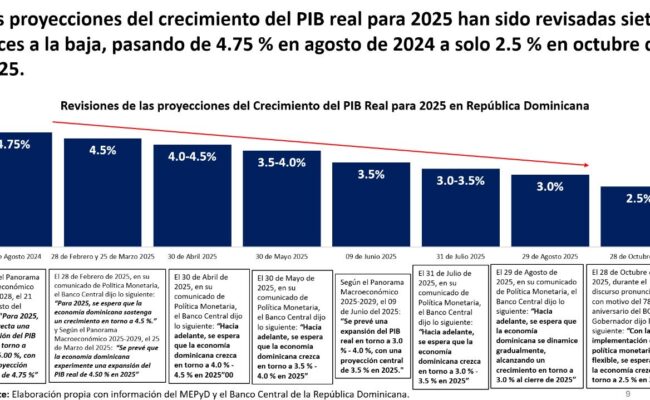 Carrasco argumentó que las proyecciones del crecimiento económico de República Dominicana para 2025 han sido revisadas a la baja nueva vez.