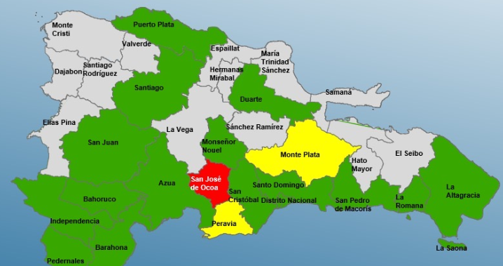 En cuanto a las alertas específicas, la provincia de San José de Ocoa ha sido colocada en alerta roja debido a la intensidad de las lluvias, mientras que Monte Plata y Peravia están en alerta amarilla. Además, otras 16 provincias, junto con el Distrito Nacional, están bajo alerta verde por el riesgo de crecidas de ríos, arroyos y cañadas, así como inundaciones repentinas o urbanas.
