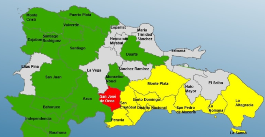 En alerta roja se mantiene la provincia San José de Ocoa.