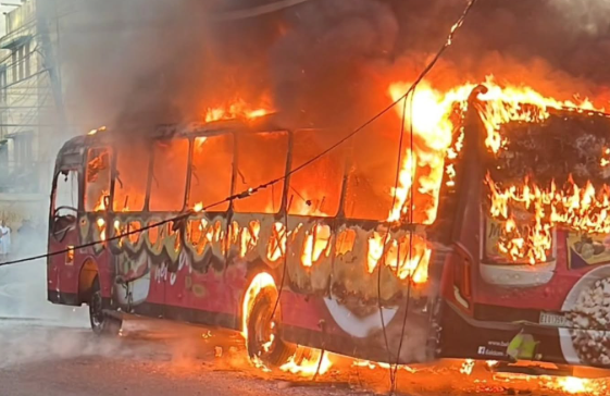 SANTO DOMINGO.- Un autobús de la Operadora Metropolitana de Servicios de Autobuses (OMSA) se incendió la mañana de este martes en la calle Albert Thomas esquina Manuela Díez, sector María Auxiliadora, en el Distrito Nacional.
