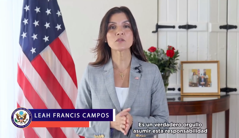 Hola, República Dominicana. Soy Leah Campos, la nueva embajadora de los Estados Unidos en este hermoso país”, expresó. “Es un verdadero orgullo asumir esta responsabilidad y representar a mi nación ante un pueblo tan cercano y tan amigo. A lo largo de mi carrera he tenido el privilegio de servir a mi país en distintas partes del mundo, pero esta misión aquí, representando al presidente Trump, es verdaderamente el honor de mi vida”.
