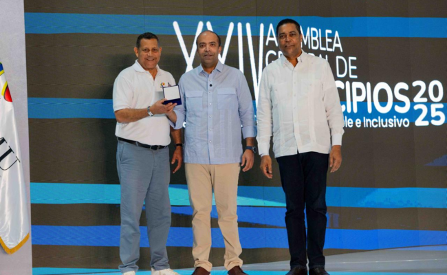 Punta Cana, La Altagracia. – En el marco de la XXIV Asamblea General de Municipios 2025, la Federación Dominicana de Municipios (FEDOMU) otorgó un reconocimiento al presidente del Consejo de Administración de Refidomsa, Samuel Pereyra, por sus valiosos aportes al fortalecimiento de la gestión municipal y su permanente colaboración con las iniciativas impulsadas por los gobiernos locales del país.