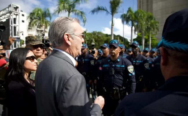 "Trabajen en beneficio de la población dominicana, respetando los derechos humanos con firmeza, acatando a sus superiores, pero, sobre todo, protegiendo la paz de todos los dominicanos. Ustedes han sido entrenados de la mejor manera con la reforma de la policía, y confiamos en que realizarán un excelente trabajo", expresó el mandatario a varios de los agentes que formarán parte del operativo.