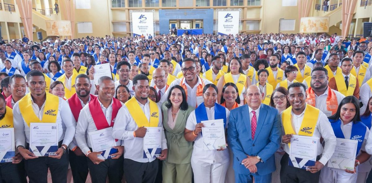 El acto forma parte del ciclo de graduaciones ordinarias, con las cuales el INFOTEP ha entregado a la sociedad 5,651 técnicos y 758 docentes, para un total de 6,409 nuevos egresados en las regiones Norte, Gran Santo Domingo y Distrito Nacional, Sur y Este.