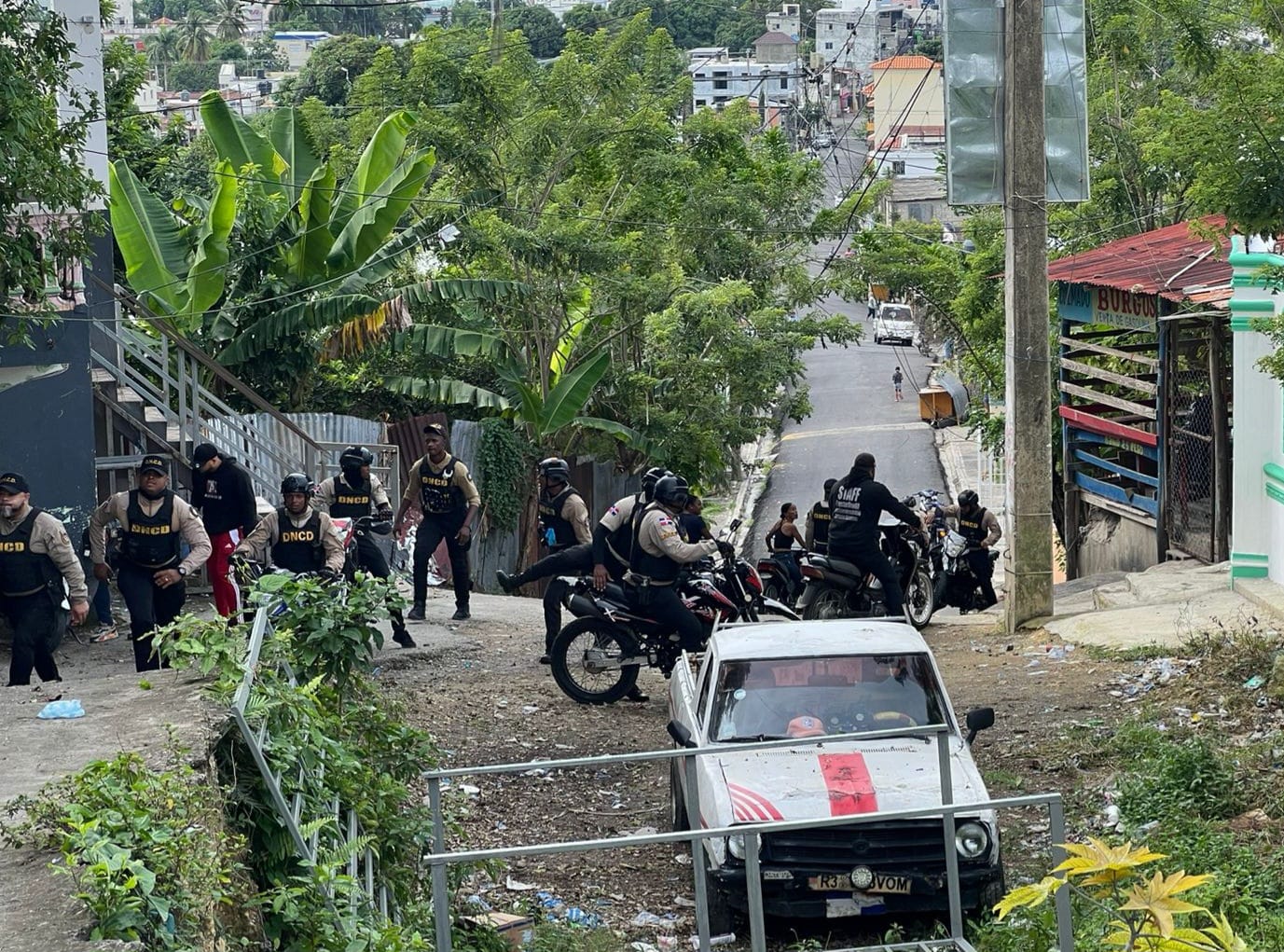 Los agentes y fiscales, mediante labores de seguimiento e inteligencia, localizaron a alias "La Chercha" en la calle Mella, esquina con Rodrigo de Triana, en el sector Albimar del municipio de San Fernando. A esta persona se le incautaron 31.7 gramos de lo que se presume es cocaína, 23,500 pesos dominicanos, una motocicleta y un celular.