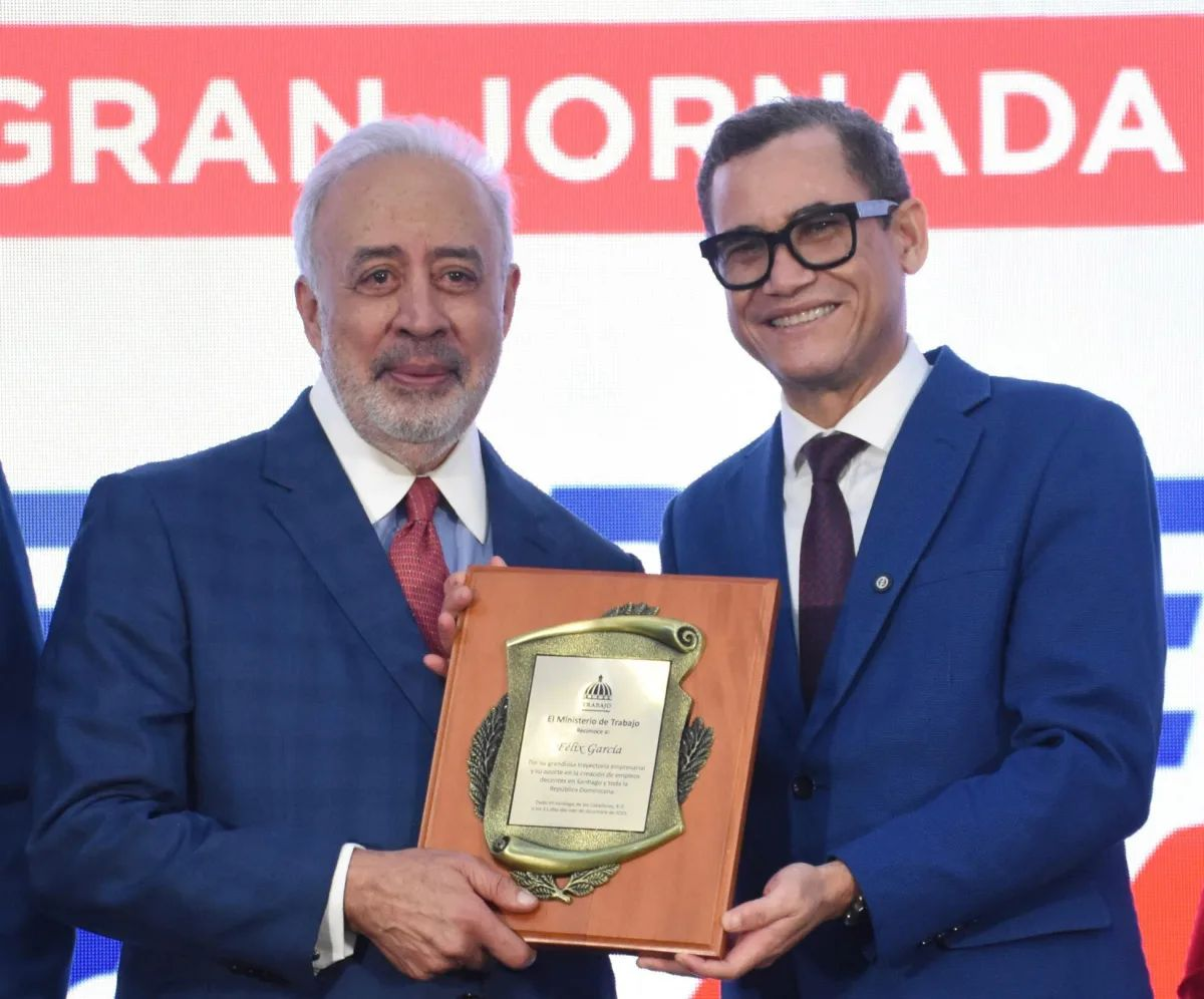 Uno de los momentos más significativos fue el reconocimiento al empresario Félix García, distinguido por su amplia trayectoria empresarial y sus aportes al desarrollo económico de Santiago. El homenaje resaltó su liderazgo, su visión de crecimiento y su papel activo en la generación de empleos formales en la región.