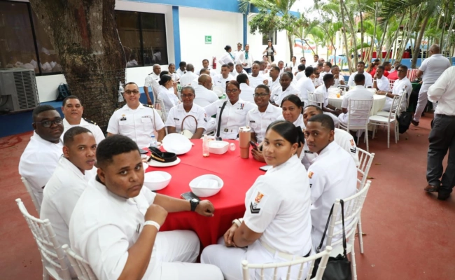 Santo Domingo. – El presidente Luis Abinader, en compañía del ministro de Defensa, Carlos Antonio Fernández Onofre, compartió este sábado su tradicional almuerzo con oficiales y soldados de la Armada y la Fuerza Aérea de la República Dominicana en los cuales les agradeció por el servicio que le prestan a la nación y les garantizó que seguirán contando con su respaldo para el cumplimento de su misión.