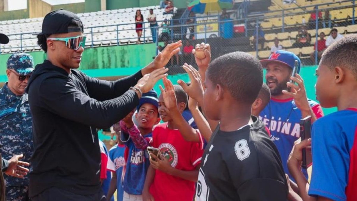 Juan Soto compartió con cientos de niños de diferentes ligas deportivas infantiles en Monte Plata