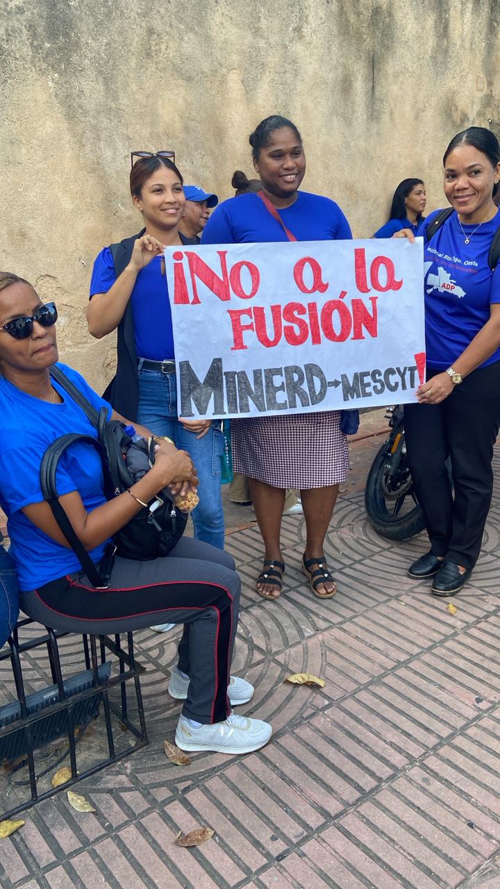 La Corriente Magisterial Juan Pablo Duarte y el Frente Magisterial marchan la tarde de este jueves en protesta contra la propuesta de fusión del Ministerio de Educación (Minerd) y el Ministerio de Educación Superior, Ciencia y Tecnología (Mescyt), una iniciativa que califican de improcedente y perjudicial para el sistema educativo nacional.
