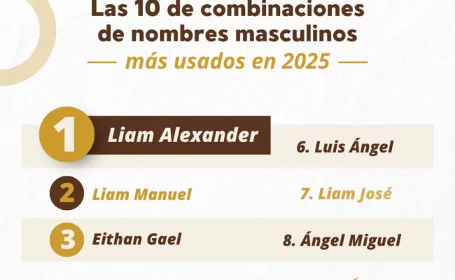 Entre las combinaciones masculinas figuran Luiam Alexander, Liam Manuel, Eithan Gael, Liam Gael, Liam David, Luis Ángel y luis Miguel.