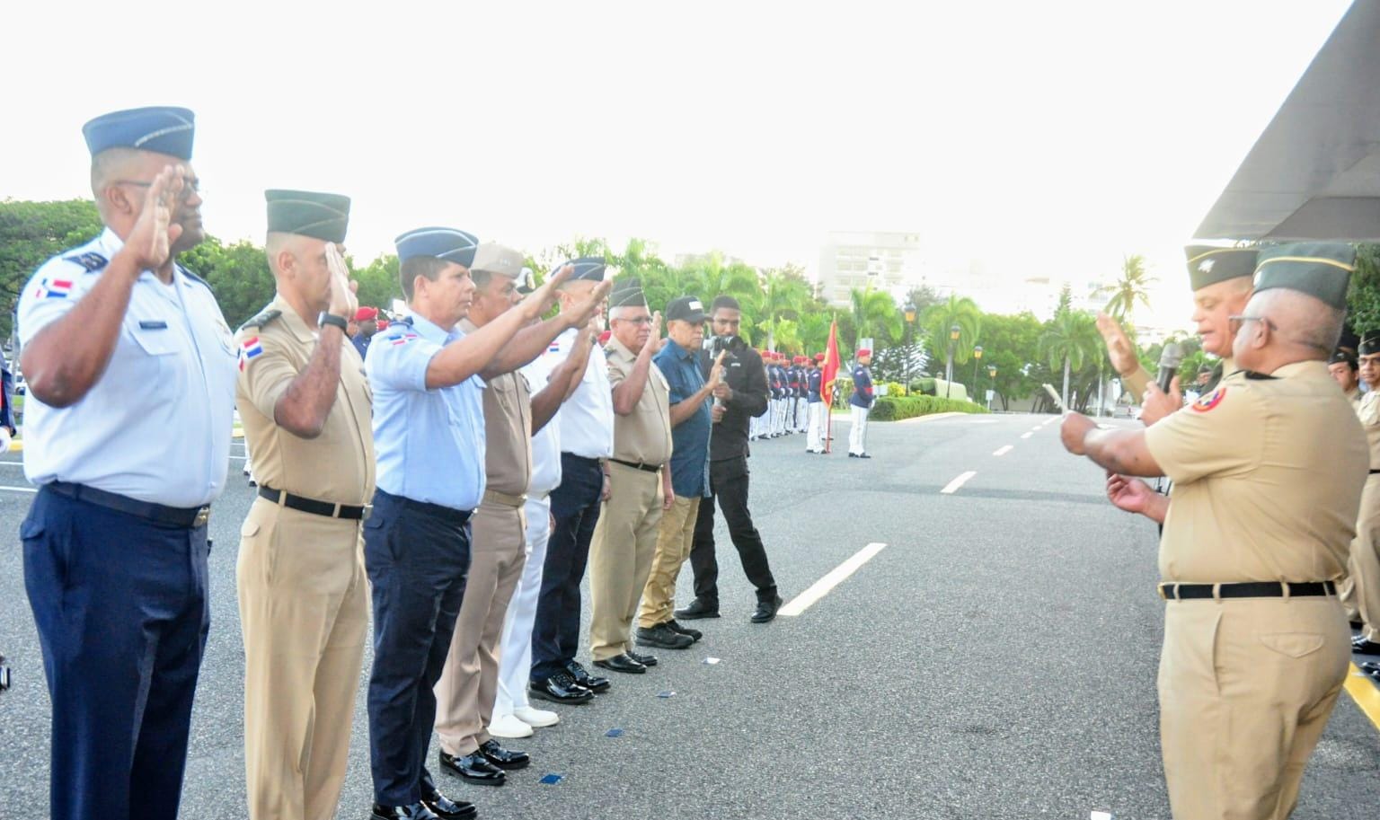 Fernández Onofre juramentó al general de brigada Euler E. Sierra Pérez, FARD, como Presidente del Comité Organizador junto a un grupo de oficiales de las Fuerzas Armadas y la Policía Nacional.