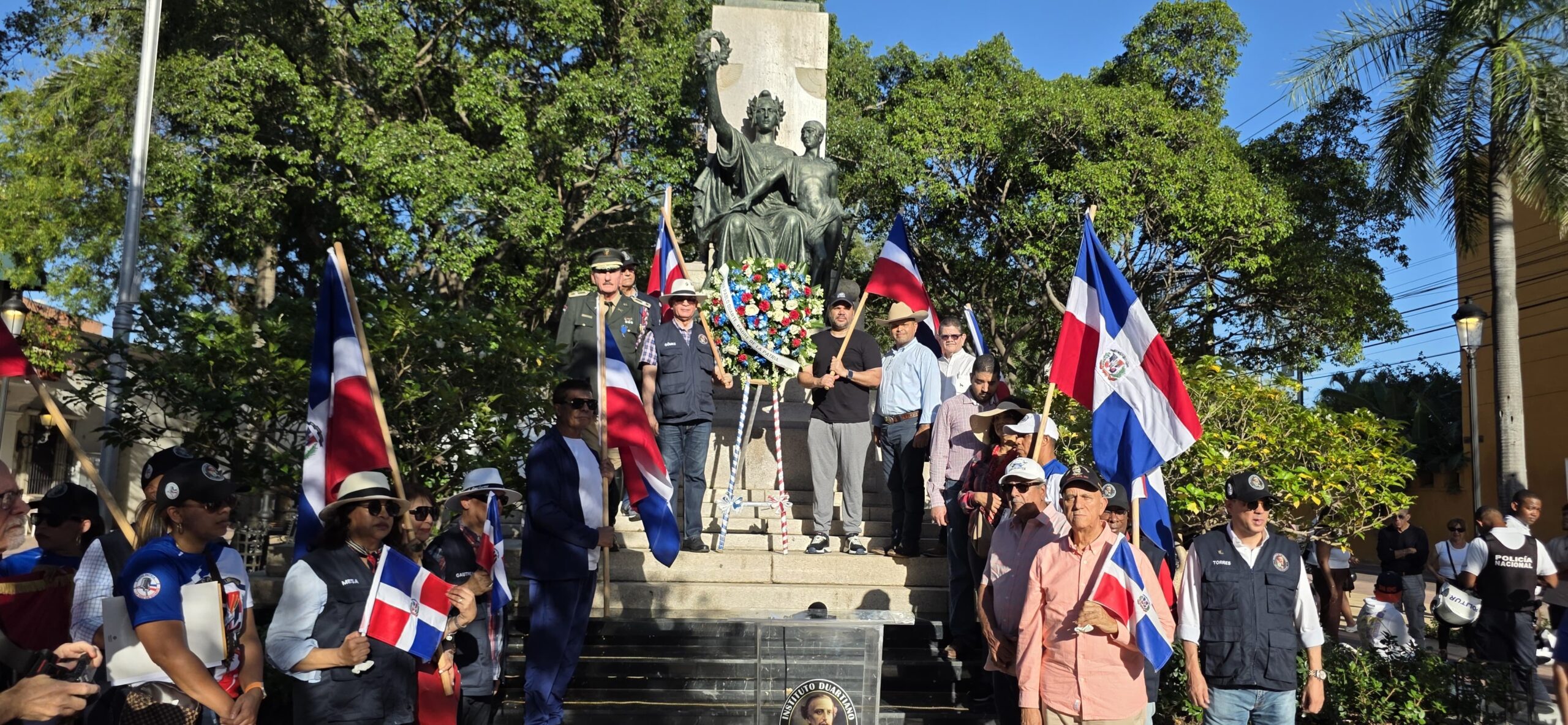 Acto seguido, los directivos del Instituto Duartiano, acompañados por los caballistas, procedieron a depositar una ofrenda floral ante la estatua del prócer. Este gesto reafirmó el compromiso de las instituciones presentes con la preservación de los valores de libertad, soberanía e independencia que Duarte inculcó a su pueblo.