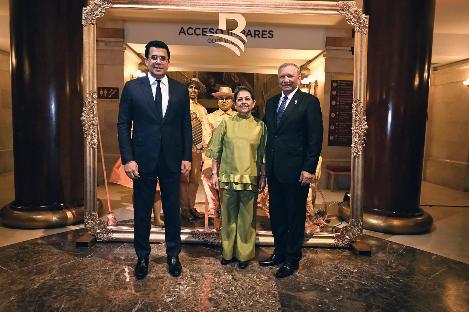 El ambiente del evento reforzó el carácter simbólico del homenaje: desde la explanada del Teatro Real iluminada con los colores de la bandera dominicana, hasta una escenografía interior inspirada en la piedra larimar.