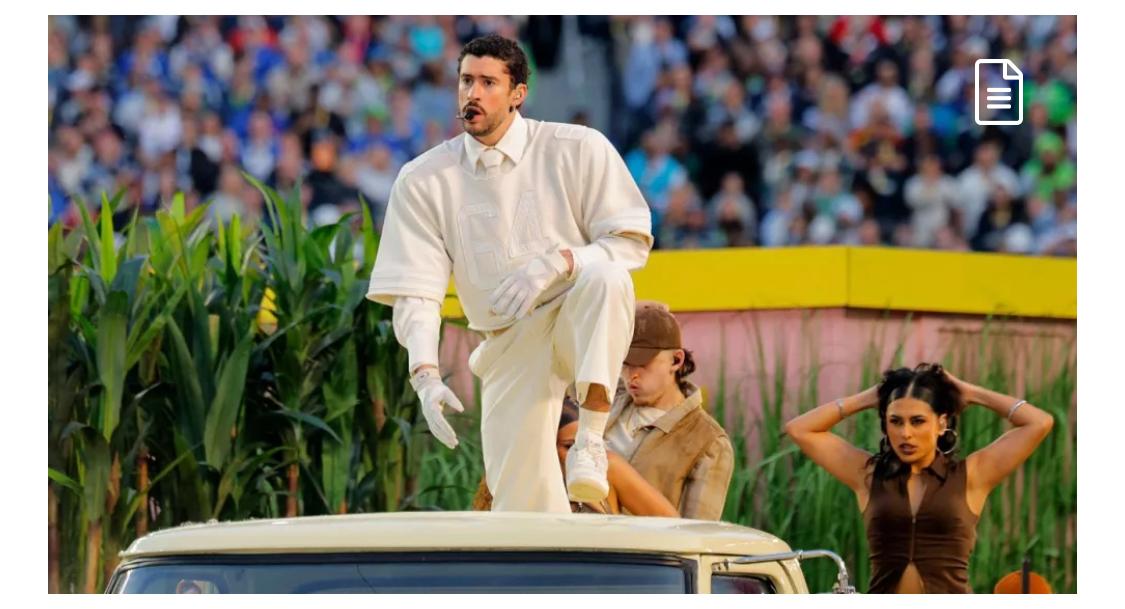 Bad Bunny, cantante nacido en Puerto Rico cuyo nombre real es Benito Antonio Martínez Ocasio, marco un hito este domingo al encabezar el espectáculo del medio tiempo del Super Bowl con una presentación íntegra en español.