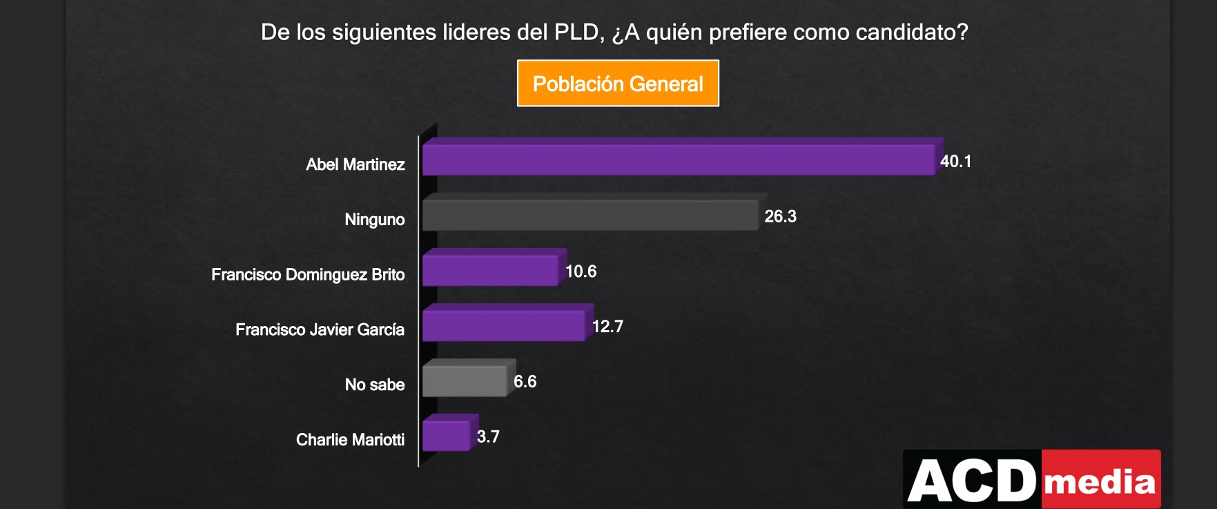 Abel Martínez, quien fue candidato presidencial del Partido de la Liberación Dominicana en 2024, lleva la delantera entre otros aspirantes para obtener la nominación en los comicios de 2028, según los resultados de la encuesta de ACD Media.