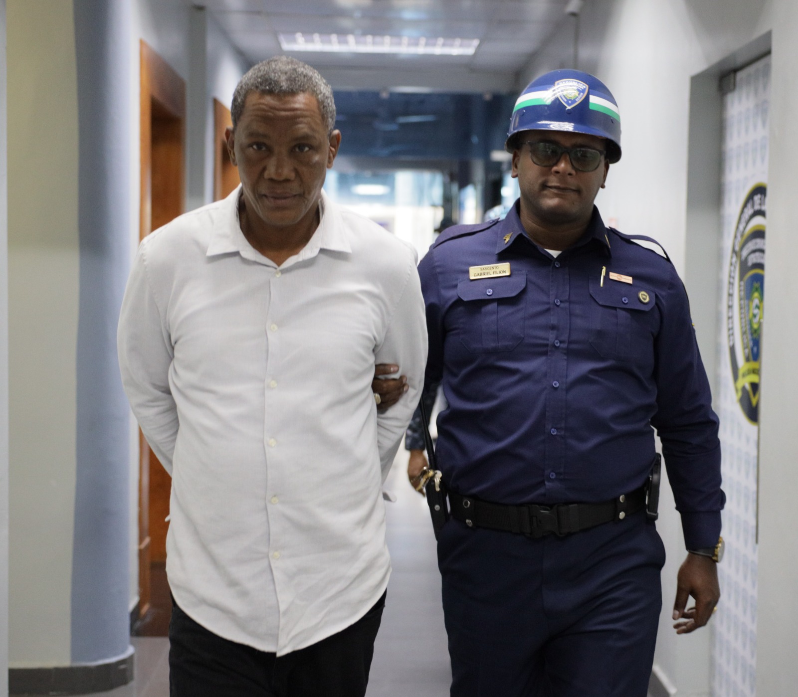 Elias Castillo, apodado “El Patrón”, señalado como presunto autor de la muerte de la joven Reynalda Carrasco Antoine, de 22 años. La entrega fue realizada a través del director de Comunicaciones Estratégicas de la institución, coronel Diego Pesqueira, en la explanada frontal del Palacio de la Policía Nacional.