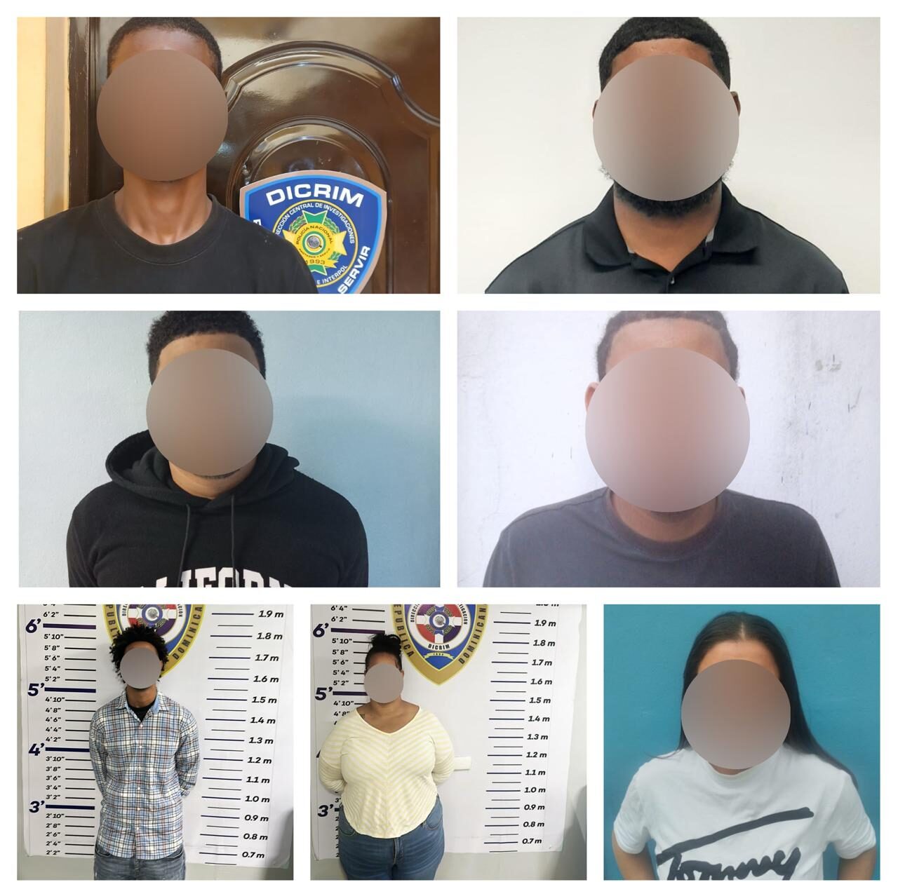 En los operativos fueron detenidos Francisca Rosalía Ynfante Gómez, Milleirys de la Rosa Sánchez, Gustavo Adolfo Márquez, José Enrique Marte de la Cruz, Israel Abad Pérez, Oscar Alfredo Olea Adames y Héctor Luis Garcia, señalados como presuntos beneficiarios de fondos obtenidos mediante engaños digitales, accesos no autorizados a cuentas bancarias y chantajes a través de redes sociales y aplicaciones de mensajería.