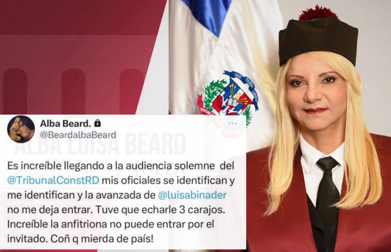 Santo Domingo, RD.– La jueza del Tribunal Constitucional, Alba Luisa Beard Marcos, explotó este lunes en sus redes sociales tras supuestamente negársele la entrada a ella y a su seguridad a una actividad en la que participaba el presidente de la República, Luis Abinader.